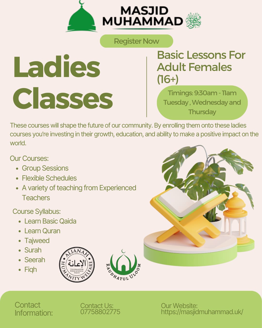 At Madrasah Raudhatul Uloom, our mission is to nurture each student’s understanding of Islam and support their spiritual, moral, and personal growth. We aim to equip learners with the ability to reflect on their lives through a lens of God-consciousness, rooted in Islamic principles.